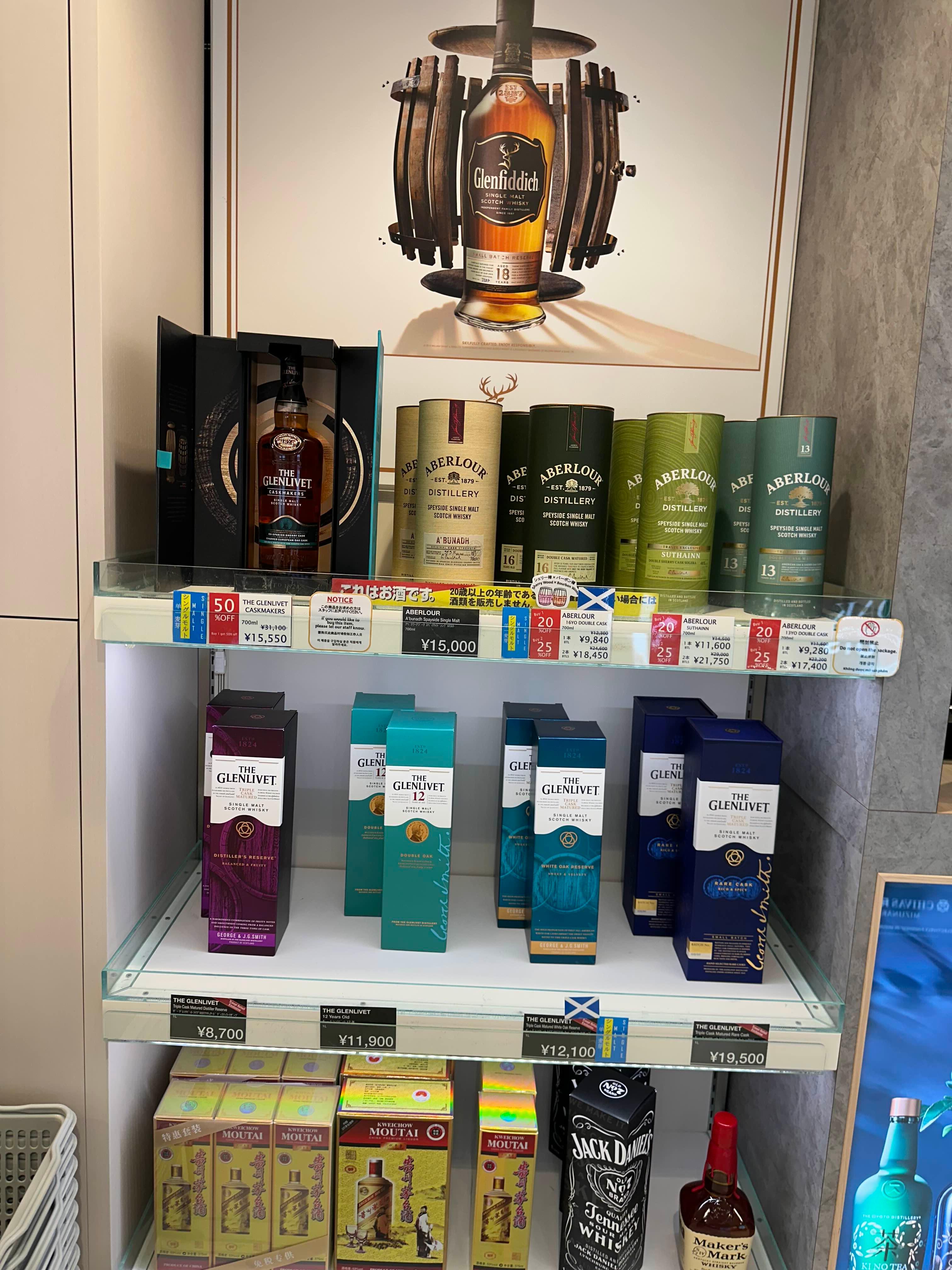 일반적으로 공항 면세점에서 판매하는 위스키는 대부분 판매하고 있더라구요. 나고야의 리큐어샵을 이곳 저곳 돌아다녀봤지만 저렴한 느낌은 절대 아니었습니다. 후쿠오카나 오사카처럼 외국인이 많이 오는 곳이 차라리 저렴한 것 같았어요.