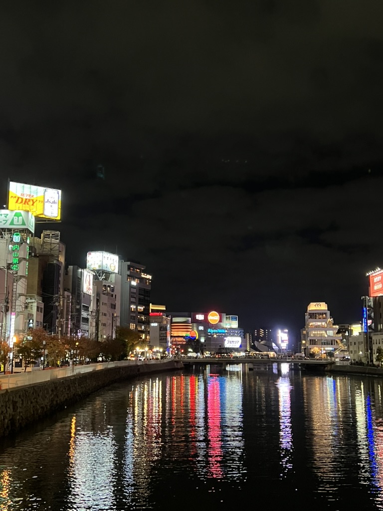 이렇게 나카강을 따라서 쭉 걸어오면 나카강의 포장마차 거리를 볼 수 있는데요. 포장마차의 일본어인 야타이에서 강을 보면서 간단하게 음식을 먹어도 좋을것 같지만 생각보다 맛이 없고 비싸다는 말을 듣고 차라리 텐진역 앞에 있는 곳에서 먹으려고 패스했어요.