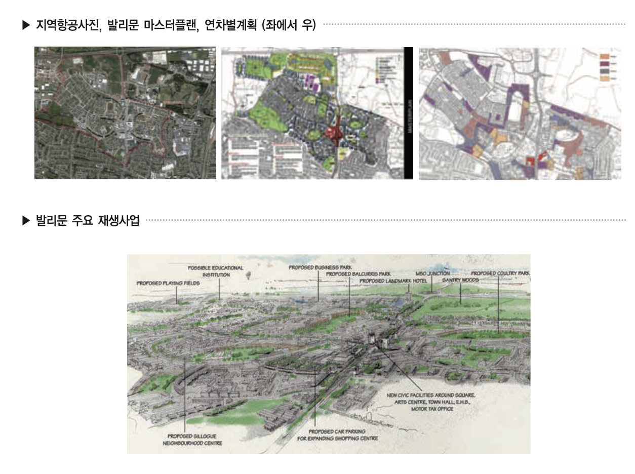 - 초기의 발리문은 산업화된 현대 아일랜드의 대표지역이었지만, 정부의 제도정책과 전략의 복합적인 부작용으로 급속한 슬럼현상을 경험하고 1997년 이후 재생사업을 공식적으로 추진했습니다.