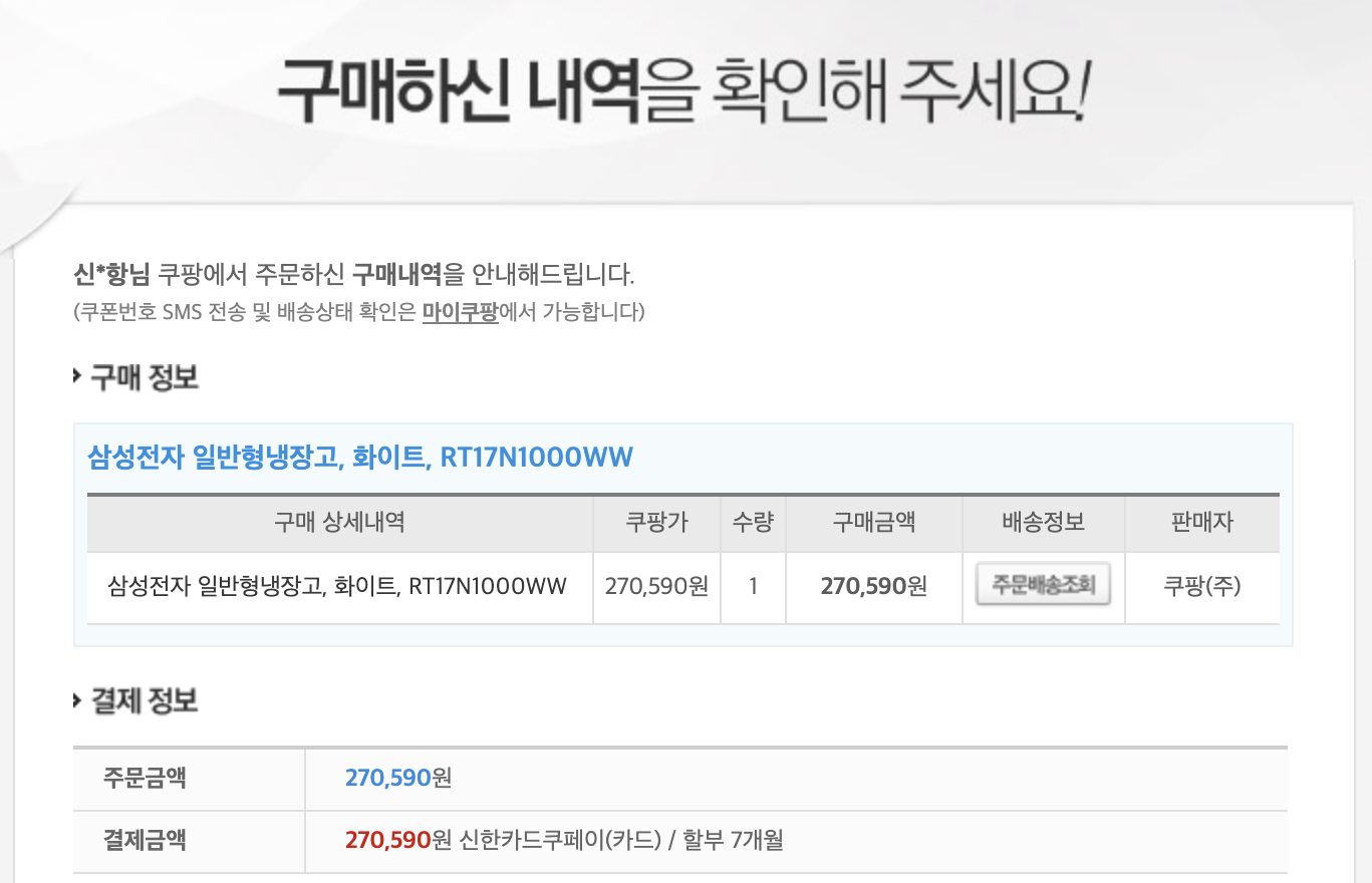 삼성전자 냉장고와 함께 구입한 삼성전자 세탁기에요. 우선 저는 이사에 맞춰 날짜 일정을 빨리 받기 위해서 쿠팡을 통해서 구입을 했으나 다양한 가격을 비교해보고 구입할 것을 추천해요. 제품명은 WA10T5262BW으로 10kg의 용량을 사용할 수 있는 통돌이 세탁기에요. 현재 가격은 35만원 정도로 제가 주문할 때는 27만원으로 할부는 7개월까지 무이자로 가능했습니다.