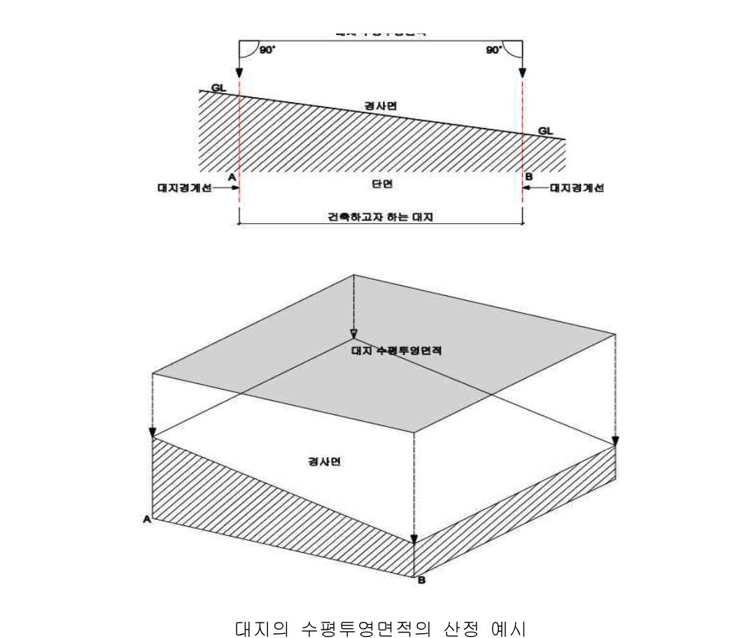 - 대지면적은 대지의 수평투영면적으로 한다.