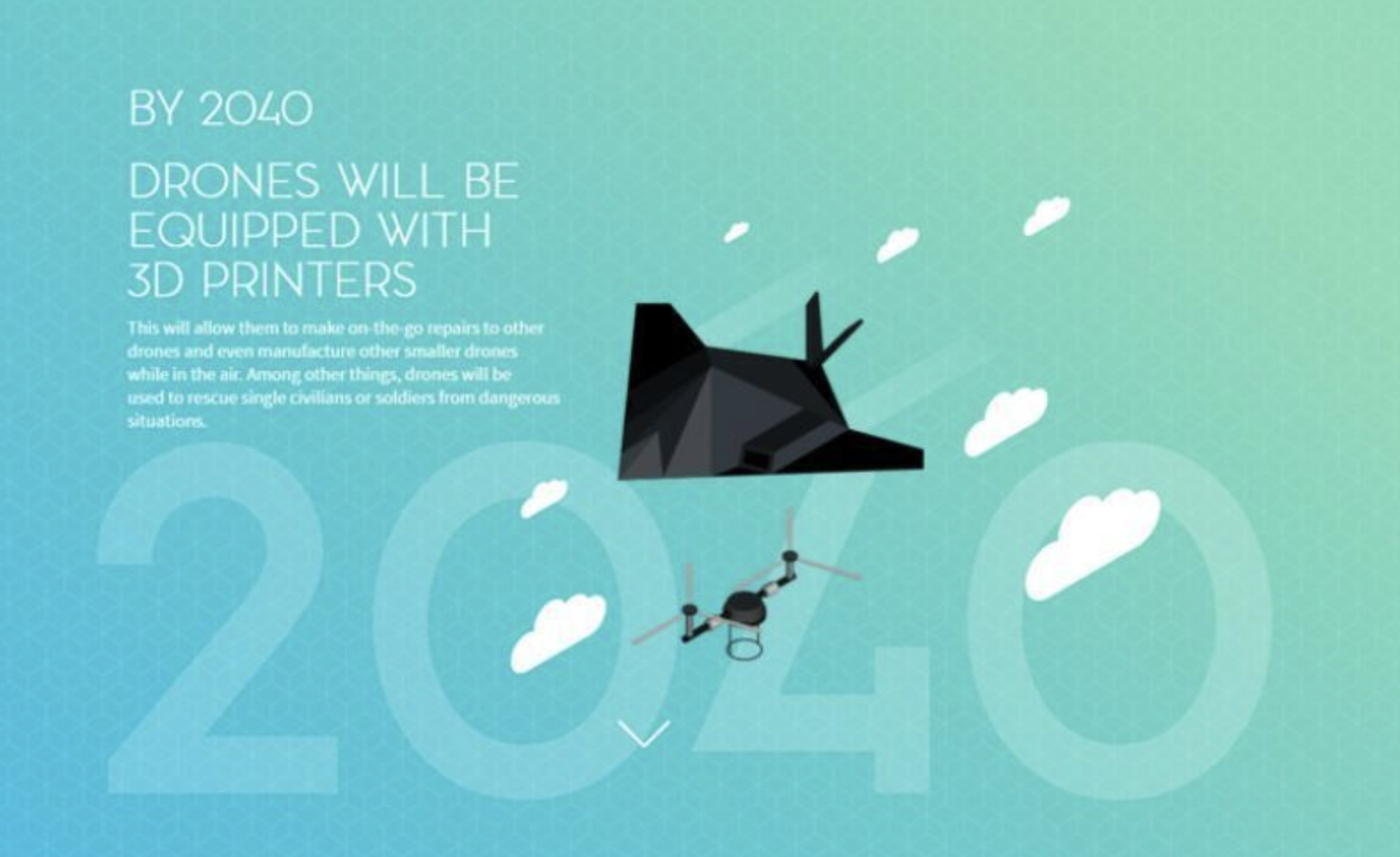 2040년 3d 프린터를 갖춘 드론 [ 무인 드론에 3d 프린터를 탑재하여 공중에서 수리가 가능]