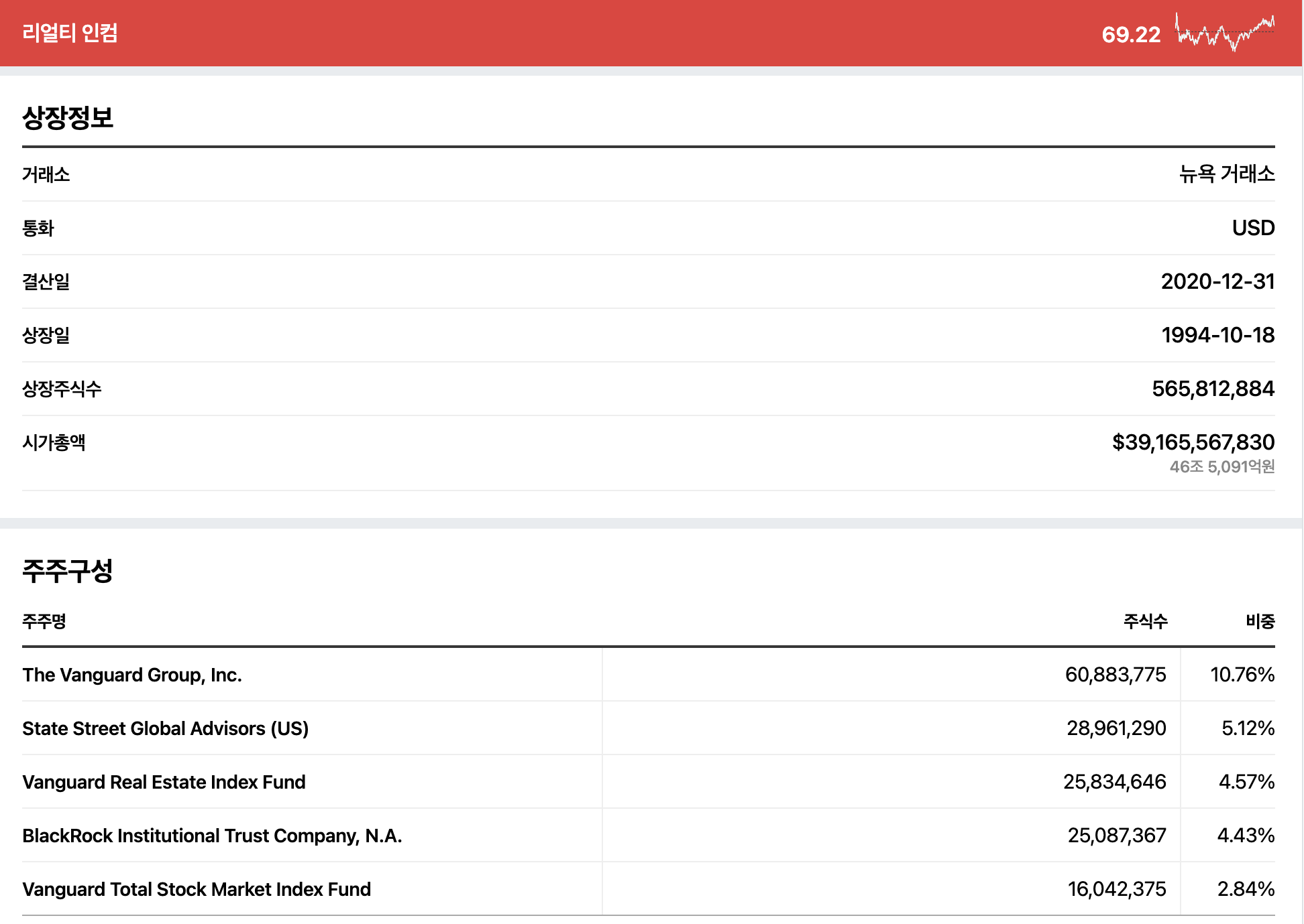 기업개요를 살펴보면 리얼티 인컴은 부동산 투자 신탁(REIT)이다. 이 회사는 장기순 임대 계약에 따라