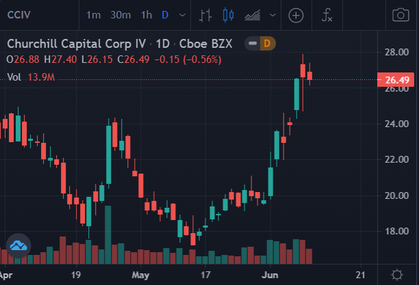 2021년 초 CCIV에서 50불을 뚫은 뒤 차량 딜리버리의 연기로 인해서