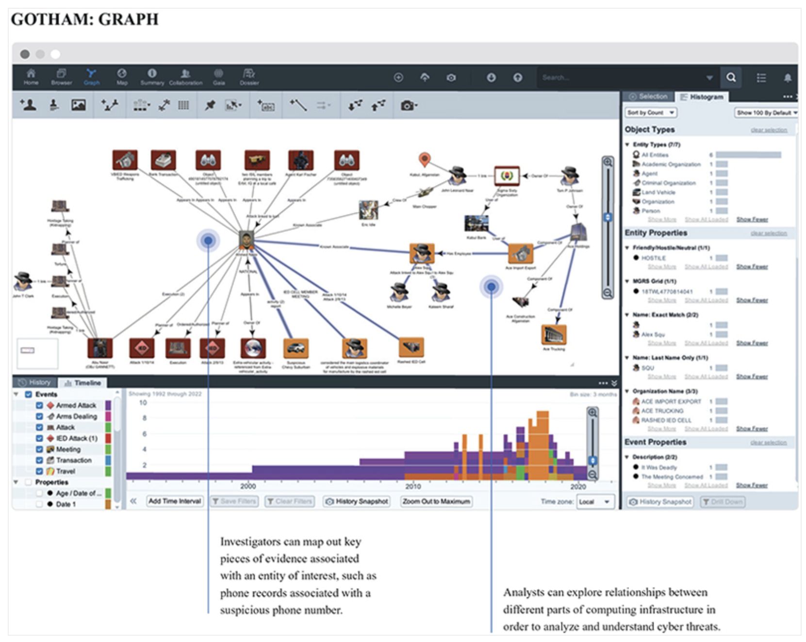 특히 팔란티어의 기술력은 FBI CIA 와 같은범죄자들의 범죄 행위를 잡아내는 등의 기술을 보유