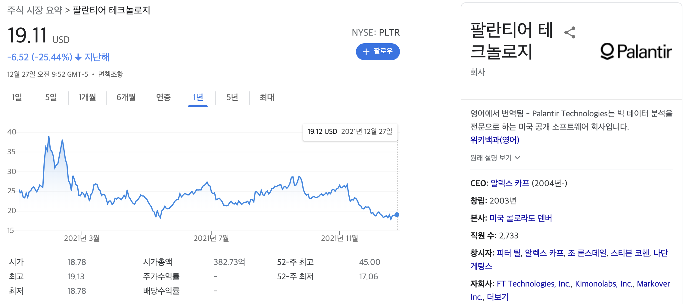 한국에서 팔란티어는 무슨 기업인지도 모르고 인기가 많은 기업으로 구매를 하는 사람들이