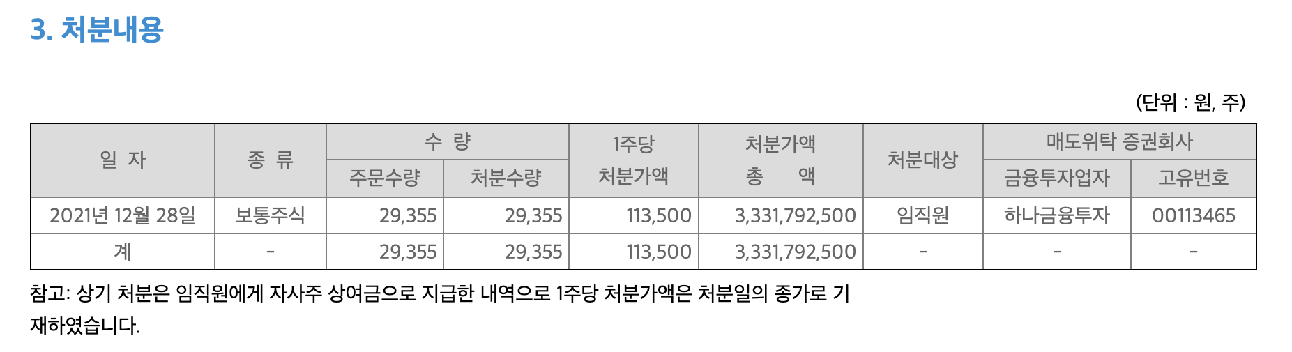큰 문제가 될것은 없으나. 2021년 12월의 꾸준한 처분 내용이 보여지는것은 호재로 보기는 어렵습니다.