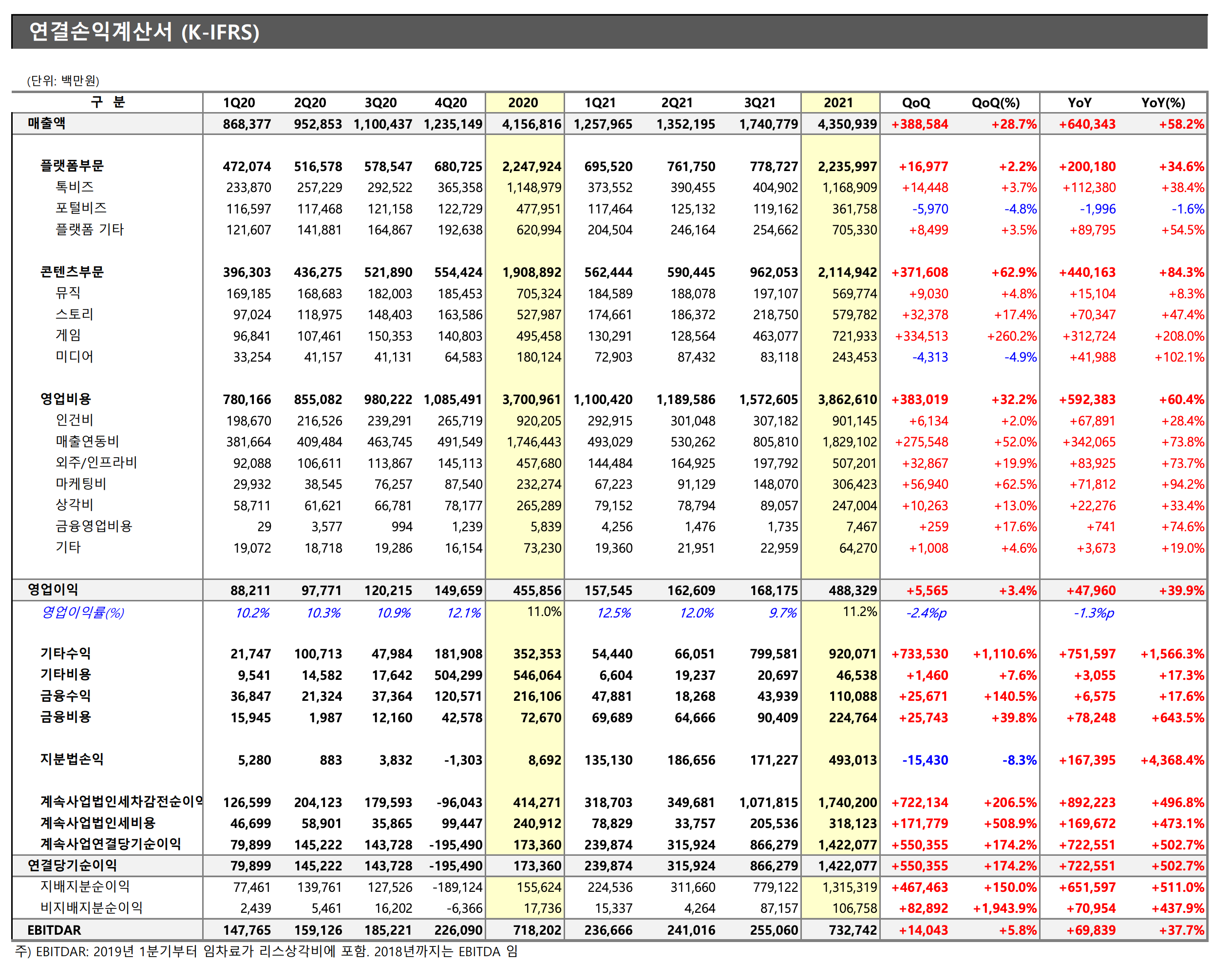 손익계산서를 보면 사업의 확장과 함께 수익률은 엄청난 손익을 보여주고 있으나 이것은 기타수익에서 보이는