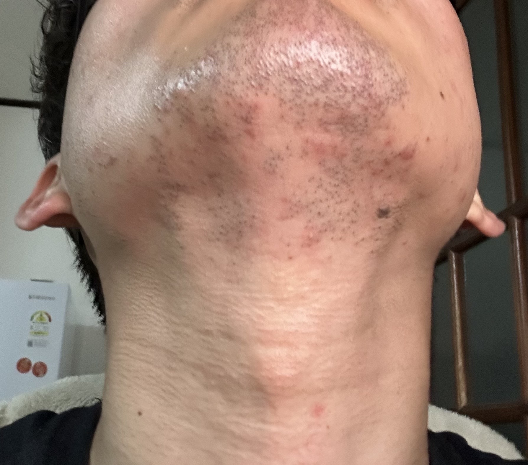 위의 사진을 보면 군대 군대 털이 나지 않기 시작하는 부분이 보입니다. 인중과 턱의 상부 부분에서 효과가 있다면 추후에 사진을 공유해보도록 할게요.