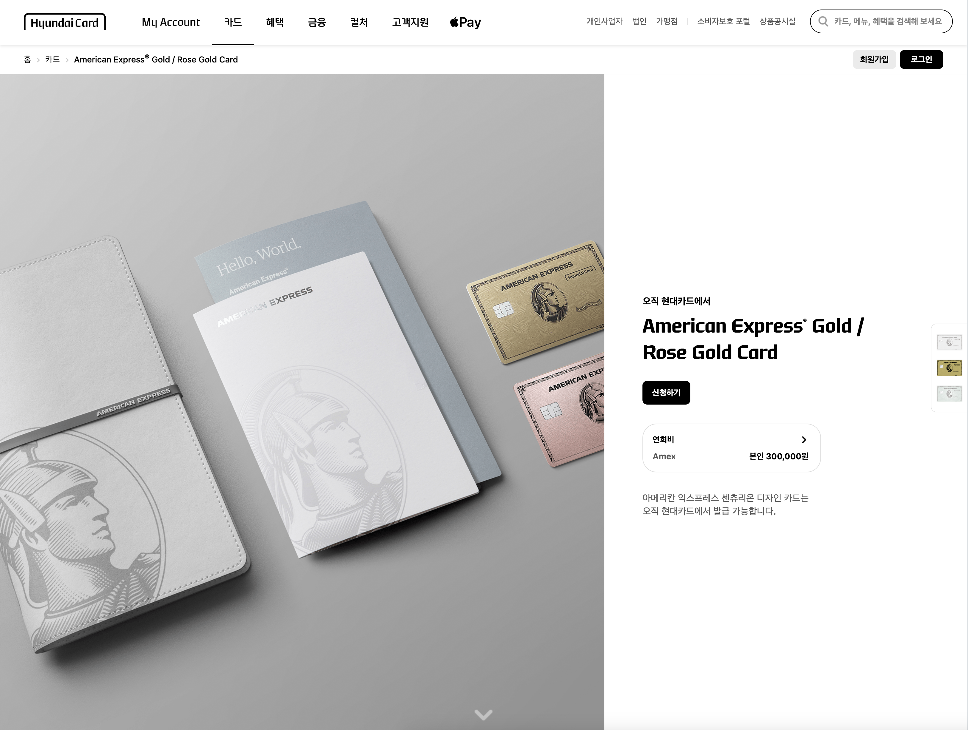 아멕스 익스프레스(American Express Gold / Rose Gold Card) 신용카드 정보 현대 아맥스 카드 리뷰