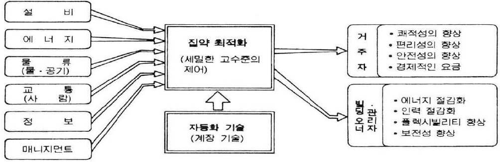 건물에 관련된 모든 설비, 환경, 인적, 물적 자원에 관한 정보를 통합하여 최적 제어하는 것과 건물 자동화의 목적은 건물 자동화 시스템을 도입함으로써 거주자나 사용자에게는 쾌적성, 편리성, 안전성의 향상 등을 건축주나 관리자에게는 에너지의 절약이나 인력의 절감 등과 같은 경제적인 효과를 도모합니다.