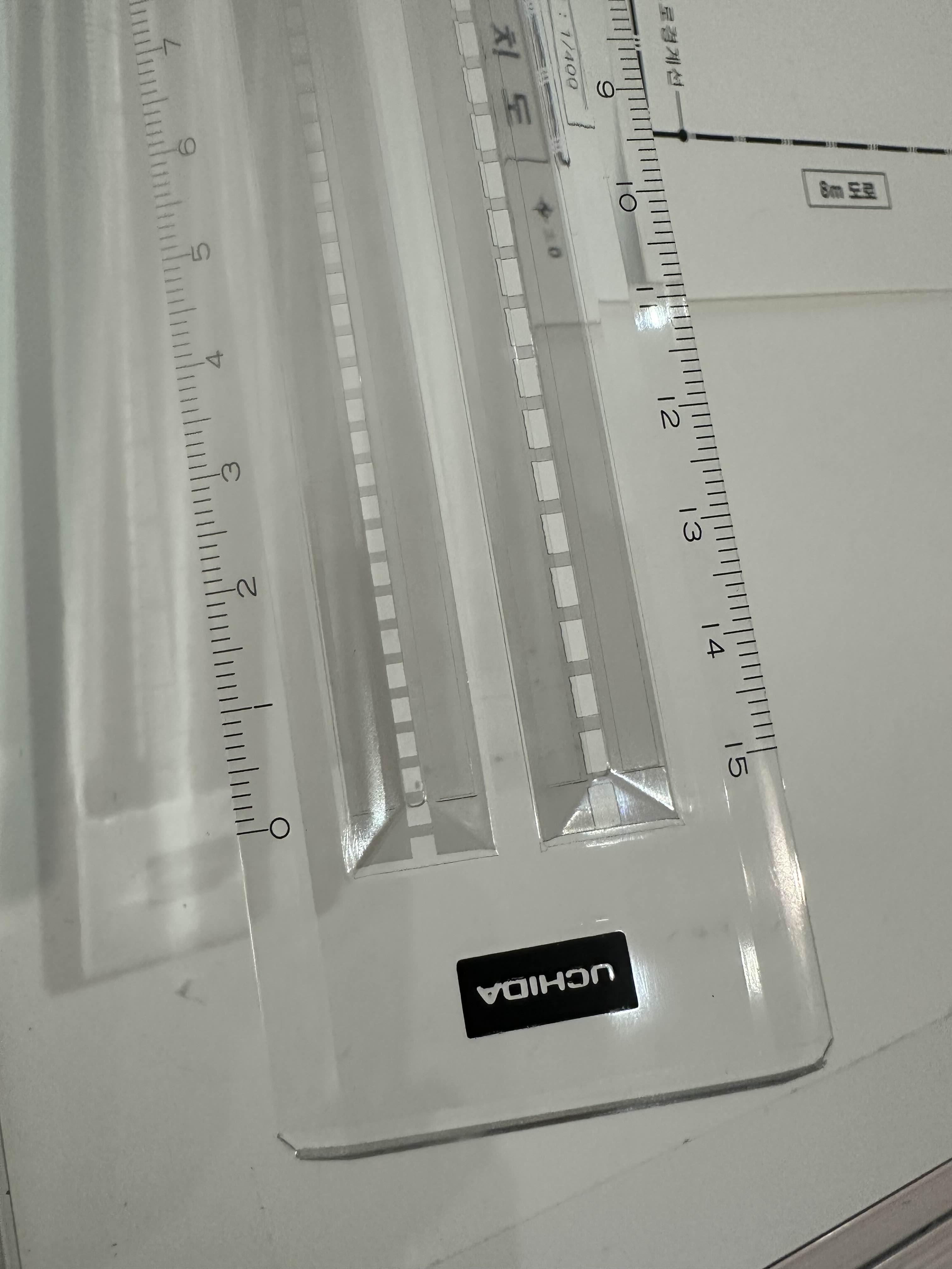 아시는 분들이라면 다들 알 그 사치템 전설의 우치다 점선 눈금자입니다. 생각한거보다는 크기가 작더라구요. 처음에는 에이 필요 없을거라고 생각하지만 막상 있으면 확실히 필요성을 느끼게 되는 아이템이에요. 특히 3교시에 구조 설비쪽이 나와서 눈금을 그려야하는 경우에는 정말.. 시간 차이도 있지만 조금 더 깨끗한 느낌이니까요.