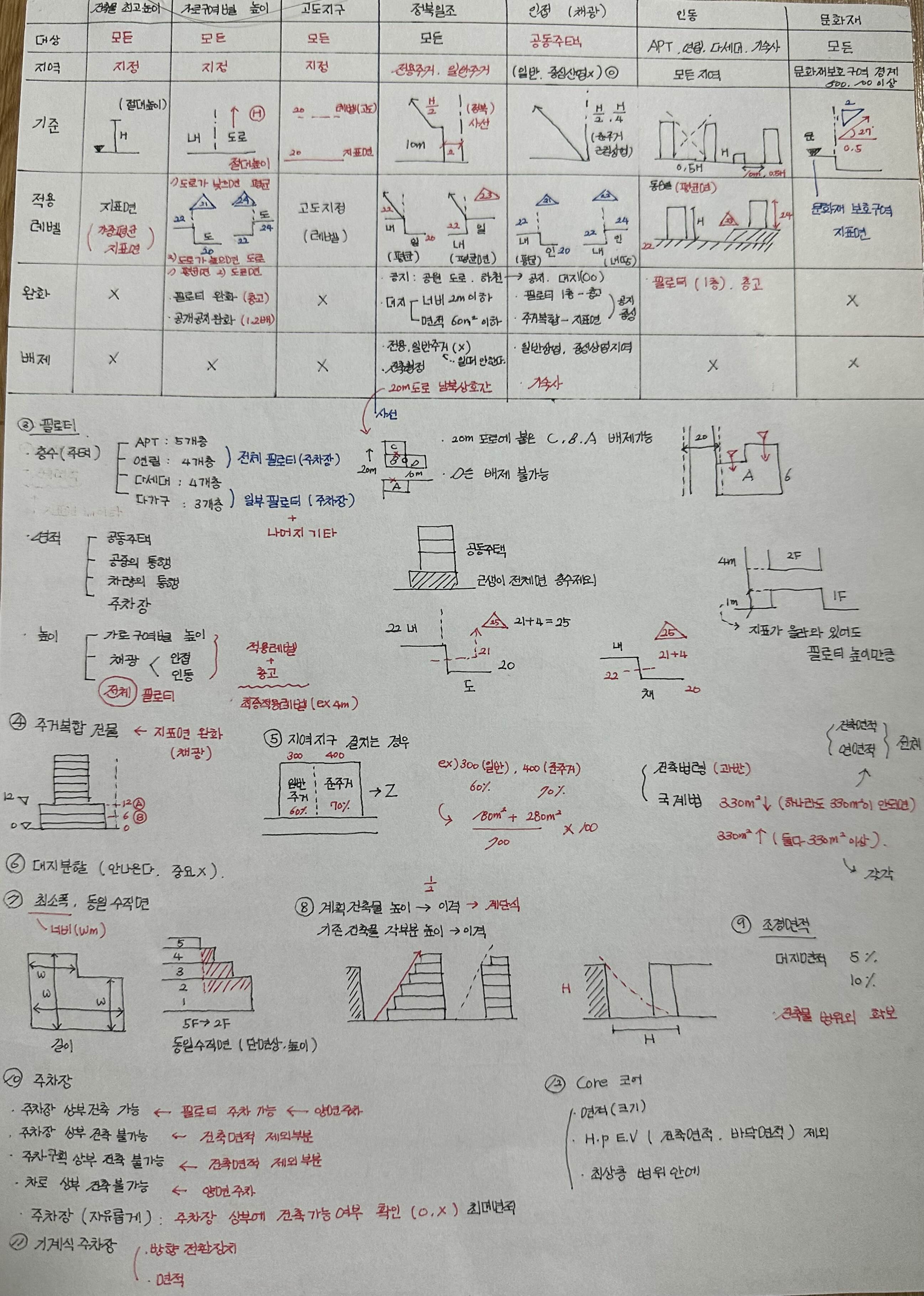 건축물 최고높이, 가로 구역별 높이, 고도지구, 정북일조, 인접 채광, 인동, 문화재에 따라서 적용 레벨이 달라지게 되는데요. 이때 중요한 부분은 지역과 대상에 따라서 완화가 되거나 배제가 되는 부분을 고려해서 적용레벨을 잡아줘야합니다.