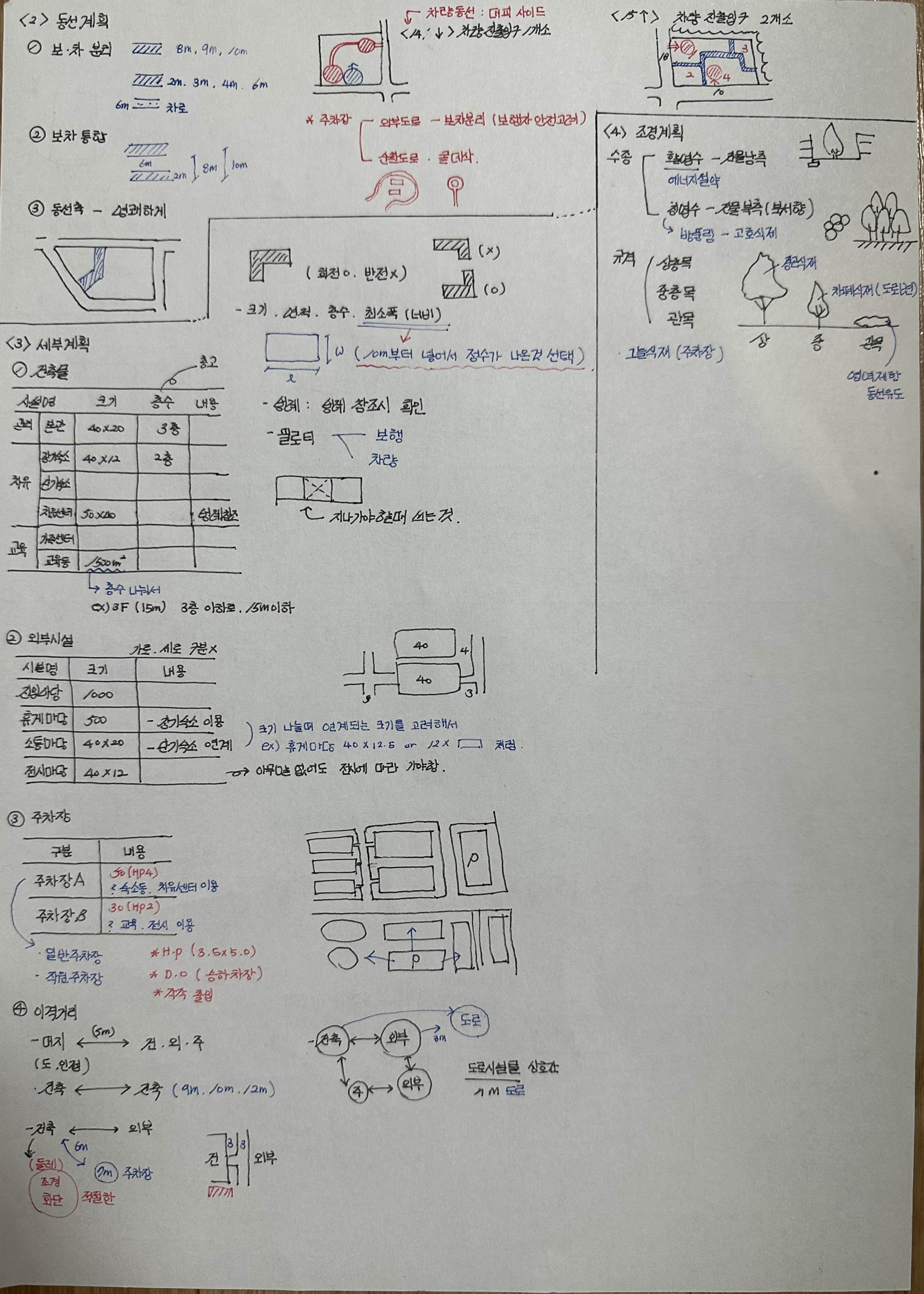 동선 같은 경우에도 축과 주차장의 용도를 고려해야하기 때문에 중요한 부분입니다. 보통은 보차 분리의 형태가 많이 나오기는 합니다만, 보차분리인지도 고려를 해줘야하고 동선축을 지정할때는 축이 될 수 있게 지정해주는게 좋아요.