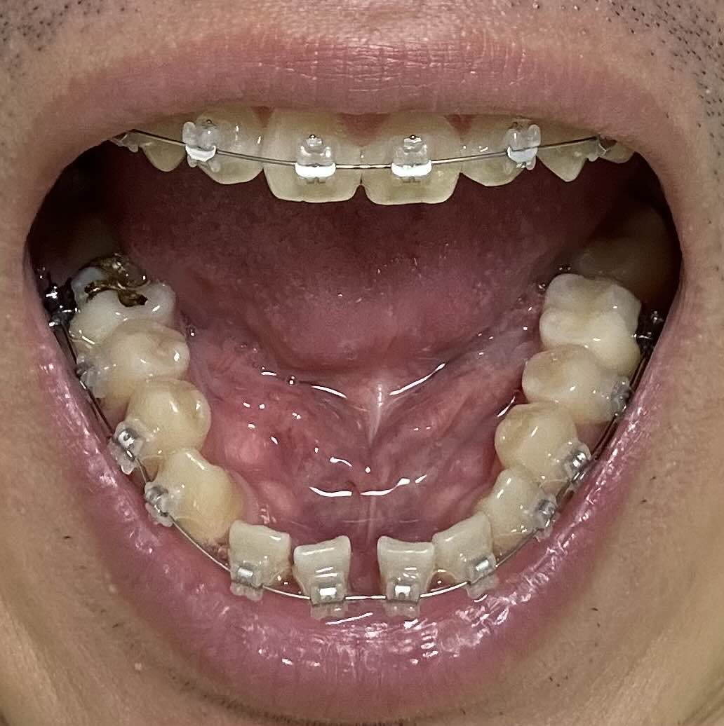 확실히 교정기를 장착하기 전에 많이 벌어진 모습이 보여요. 특히 앞니는 조금씩 더 돌아가고 있어서 교정을 고민하던 중에 결정하게 된 이유기도 해요.