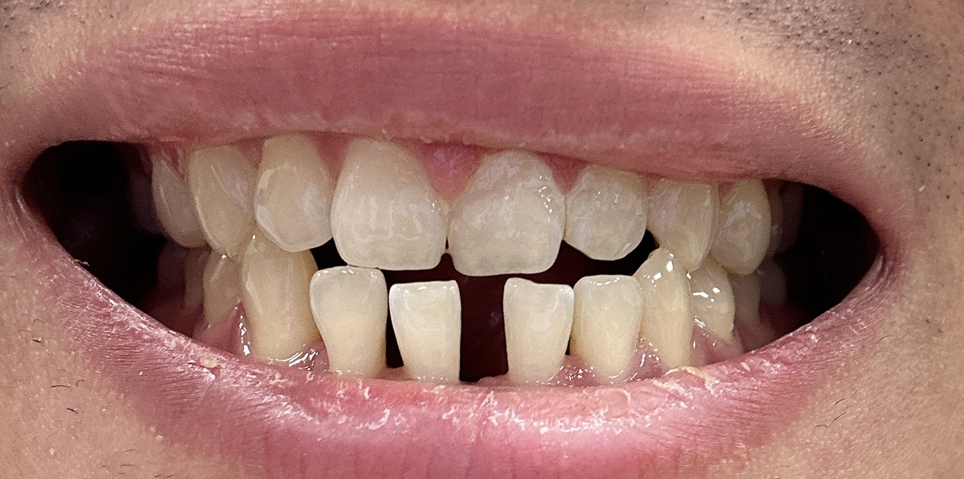 문정동 치과- 치아교정우선 제 이의 상태는 30대 남자, 앞니가 벌어진 모습이 보이고 약간의 부정교합이 있는 상태입니다. 아래 교정 전의 상태를 보여드리고 있구요. 이제부터 처음에는 일주일