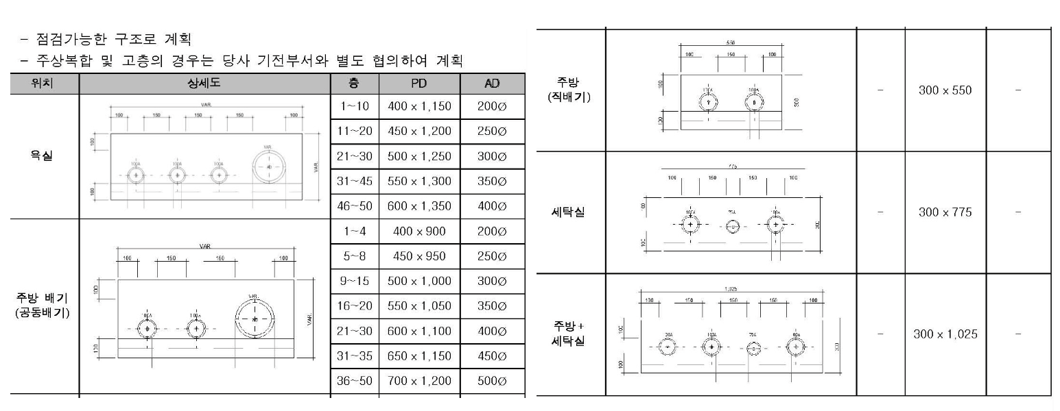 *실외기실이 PD, 욕실과 접할 경우, 덕트가 꺾이는 방향으로 추가 공간이 필요하므로 기전지원그룹과 협의 필요 |