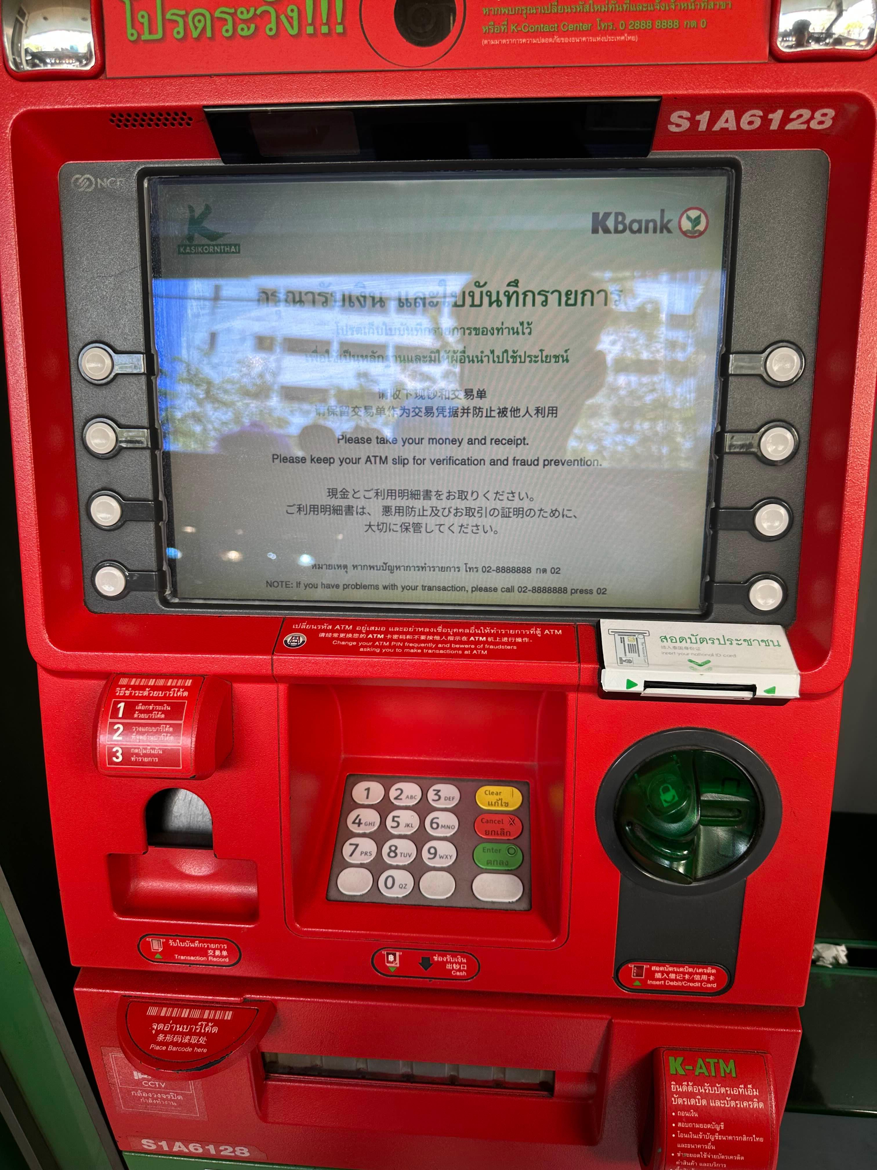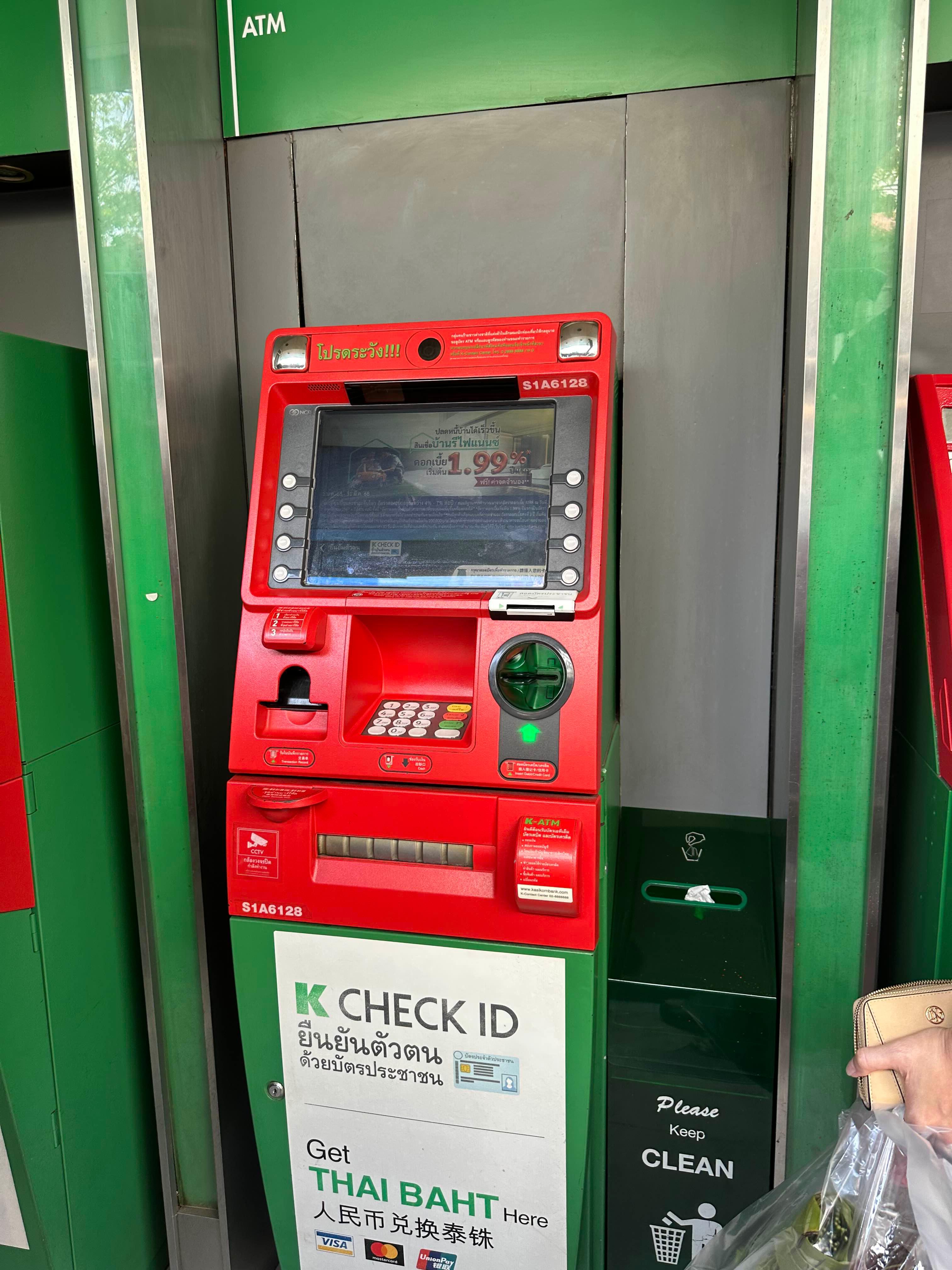 KBANK의 ATM은 초록색에 빨간색으로 되어 있는게 특징이에요. 또 막상 필요해서 보면 생각보다 안 보이던데. 또 출금을 하고 나서부터는 계속 보이더라구요.
