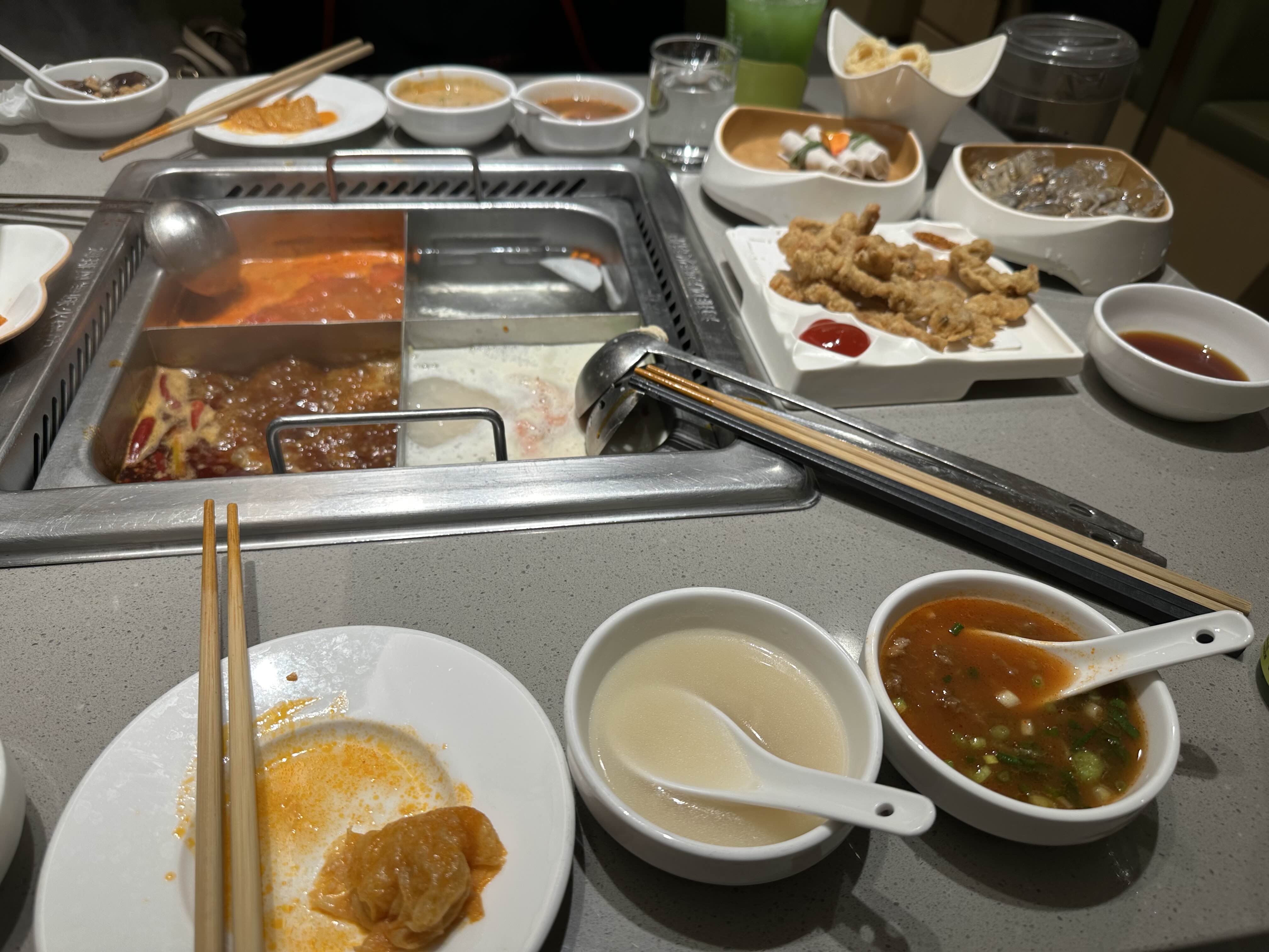 하이디라오의 대표 메뉴인 훠거는 특히 신선한 재료와 독특한 육수로 유명합니다. 매장에서 직접 손질한 각종 해산물과 다채로운 야채들이 준비되어 있으며, 선택할 수 있는 소스 또한 다양합니다. 각자의 취향에 맞춰 매운 맛, 담백한 맛 등 여러 가지 육수 옵션이 제공되는데, 이를 통해 고객은 원하는 대로 맛을 조절할 수 있습니다. 실제로 저희는 해산물과 고기를 곁들인 훠거를 주문했는데, 진하게 우러난 육수와 신선한 재료들이 어우러져 입안에서 감칠맛이 폭발하는 경험을 하게 되었습니다.