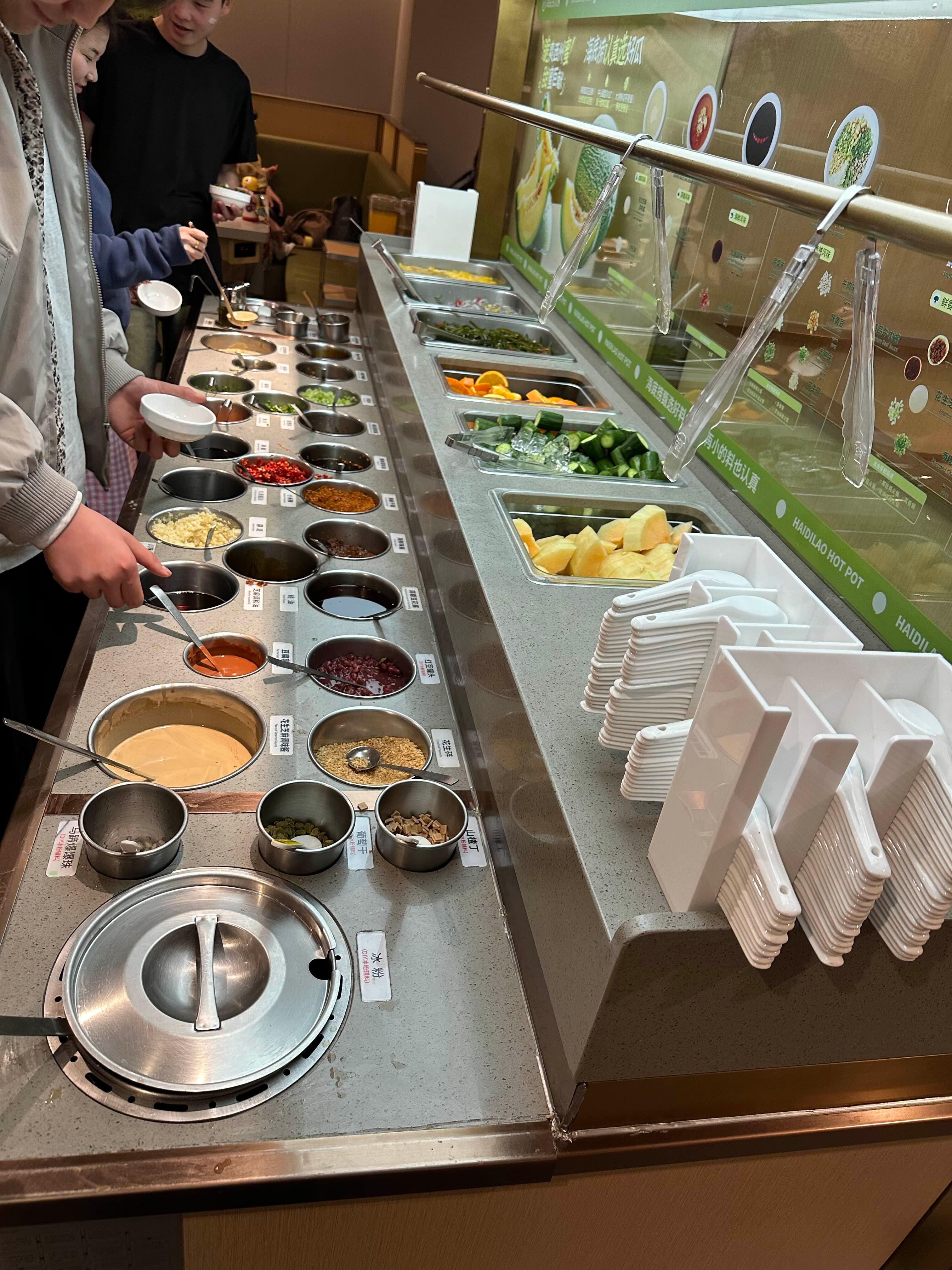 또한, 하이디라오는 고객의 편의를 위한 다양한 서비스가 돋보입니다. 테이블에 비치된 셀프 소스 바에서는 여러 가지 소스와 토핑을 스스로 조절해 볼 수 있으며, 메뉴판에는 각 재료와 요리 방법에 대한 상세한 설명이 포함되어 있어 처음 방문하는 고객들도 쉽게 이해할 수 있도록 구성되어 있습니다.